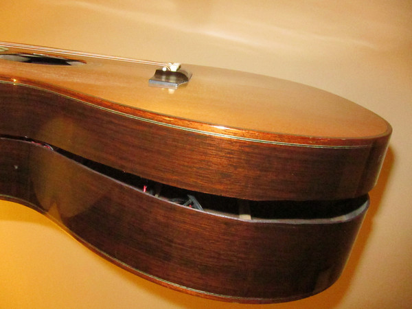 Mouais mais surtout dans celle ci , comme le dit le commentaire en anglais la guitare n'avait pas de renfort d'eclisses qui auraient très certainement empêché ce genre d'éclatement donc on peut presque parler de défaut de conception sur cet exemple