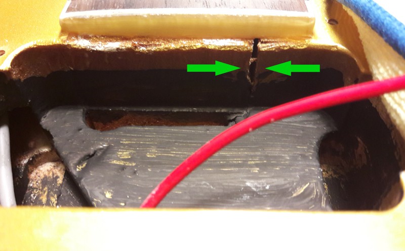 Par contre, la guitare est fendue au niveau de la cavité micro manche, je ne sais pas si c'est le corps ou le talon du manche à ce niveau.
