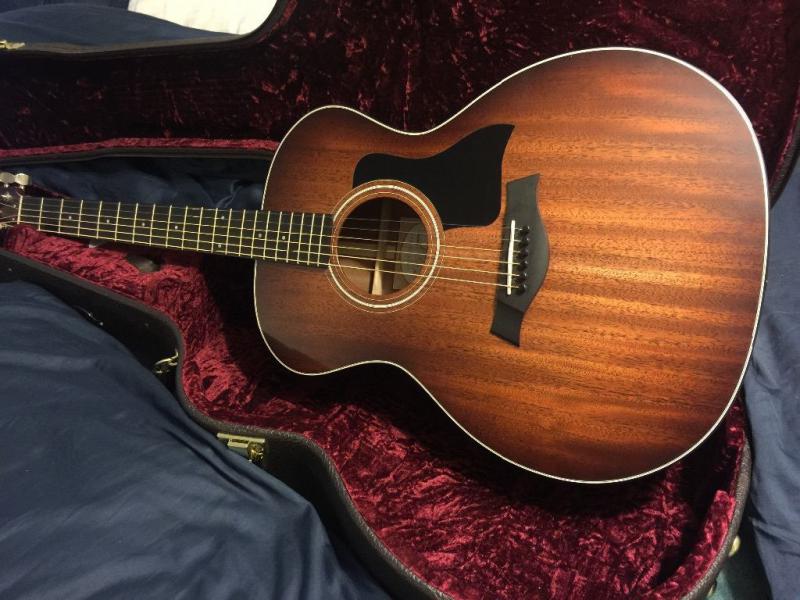 J'allais abandonner mais "pour le fun" j'ai voulu essayer la gamme au dessus, bien que hors budget. J'empoigne une splendide 324e, je plaque un FA et là c'est la BAFFE. Le réglage est... sensationnel ! Tirant de 13-53 (gros pour moi) pourtant j'enchaine les barrés à toute vitesse, ça sonne divinement. L'action est à peine plus haute que sur mes électriques, c'est juste, c'est facile, la forme du manche est un peu différente des autres Taylors (c'est un soft V) il y a vraiment un toucher très proche d'une (bonne) solid body. Je joue l'intro de Red House (bcp de bend dont 1 qui fait 2 tons), bordel mais ça passe comme Papa dans Maman !