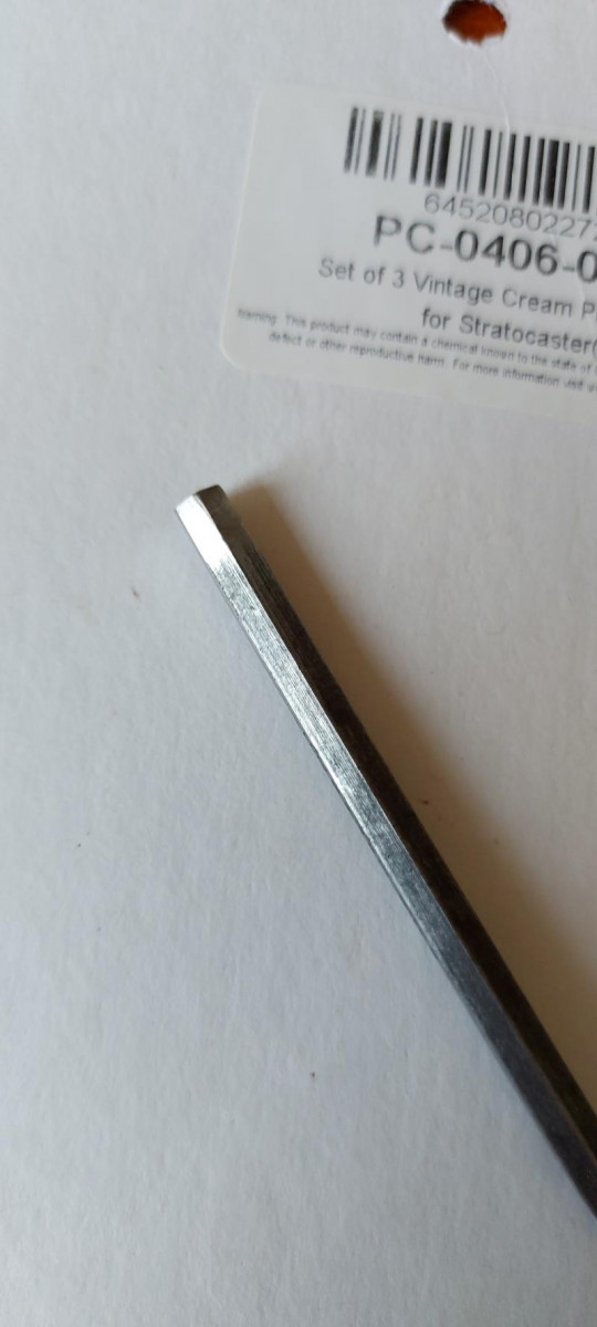 Le manche est plat, je peux pas le réglé car je n'ai pas la clé en impérial 4,76 mm ou 3/16... elle est malgré tout absolument jouable "un peu de frise" avec cordes neuves en 10/46 et facile à prendre en main. Elle percute et résonne super bien blues rock et jazz... surprenante !!!