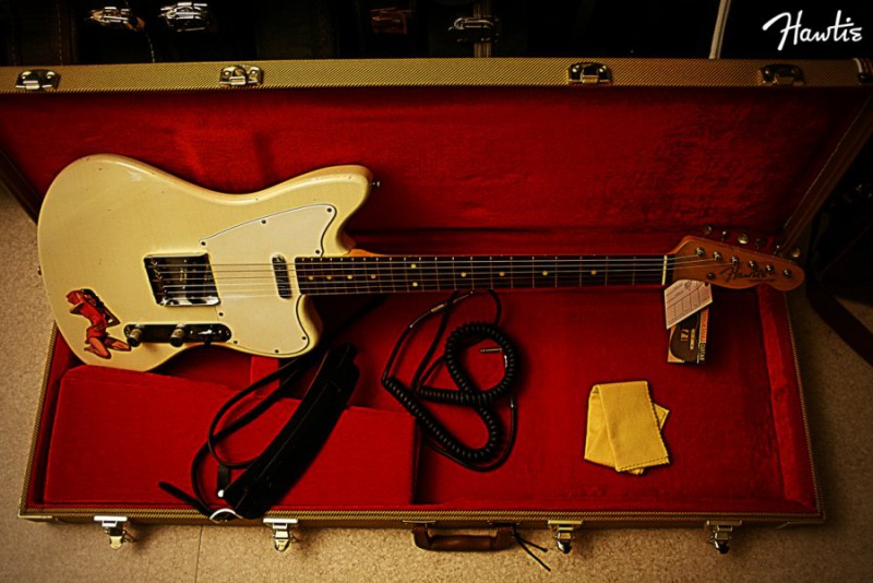 Bah en résumé, en janvier 2011 je me cherchais une telecaster mais celles qui me plaisaient étaient hors budget et en fouinant sur la baie (key words: relic tele) je tombe sur les oeuvres de Mark Jenny, et paf je vois ce corps offset, et j'en ai eu vite plus rien à foutre de la telecaster (enfin presque). Et paf me voilà avec ce kit qui aura changé mon plaisir de l'instrument presque à jamais. 7 ans plus tard après avoir acquis une merveillleuse Strat MJT/Musikraft je me décide à finir le sillet de ma 'Jagermeister' et puis tant qu'a faire à la refiler à mon luthier favori pour qu'il me la finisse aux petits oignons. Ca fait pas une semaine mais ne pas la voir dans l'coin ca me gène.
