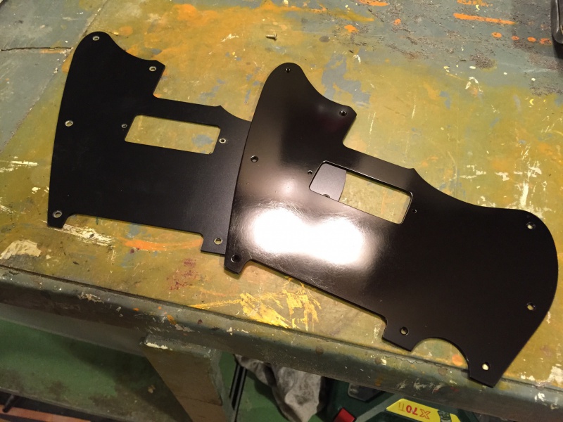 Avec le pickguard Warmoth qui m'a servit de patron: