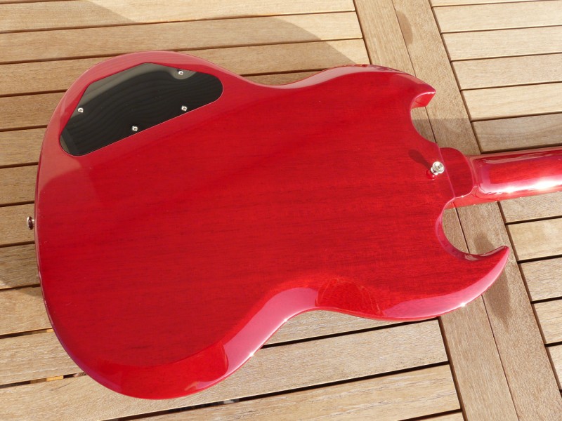 Tokai s'est pas foutu de notre gueule avec cette mini production (moins de 30 sur la planète!). A la première prise en main on sent déjà qu'on a une gratte de qualité, les finitions sont excellentes, la couleur est sublime (rouge pétant en plein soleil et prune quand il fait plus sombre). Elle est très légère c'est très surprenant au début (peut être 2,5 kg a vu de nez!). Le manche est une batte de baseball, mais ça ne me dérange pas et je me surprend même à le trouver plus confortable que les petits manches...histoire de gout. Et puis elle est tout simplement sublime avec son petit pickguard des Junior de 61 (si je me trompe pas).