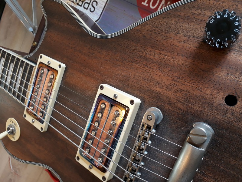 Désolé, je n'arrive pas à bien identifier vos guitares. Quand ça sort des Les Pauls ma connaissance s'amincit. Mais, effectivement, le cache truss rod à 3 vis est un indice sérieux pour une non-MIJ.