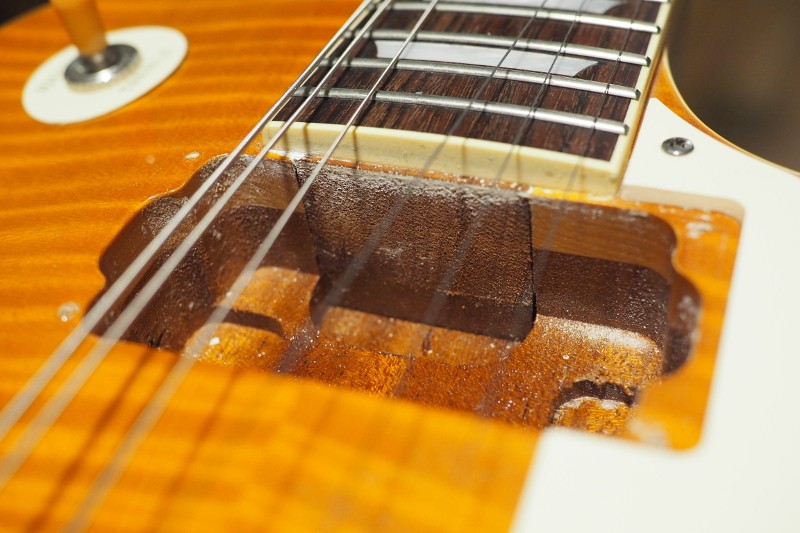 Sur les deux photos que j'ai mises, il s'agit de la même longueur, les deux arrivent au niveau des carrés fraisés pour les vis des micros. Sur ta LS122, c'est exactement la même longueur que les deux autres. Tu ne trouveras pas plus "long" sur les Tokai.