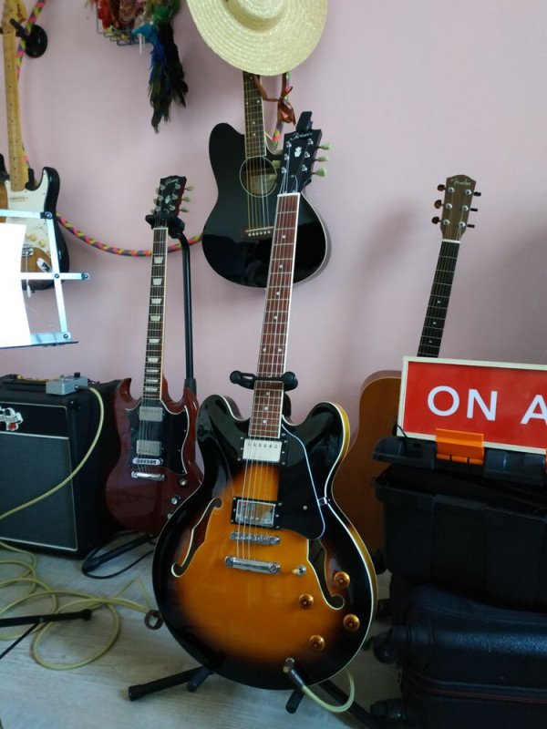 Ben j'ai aussi une MIC Tokai, mais la mienne est une JS 70 très bien foutue, une grosse mémère de 17' pouces...