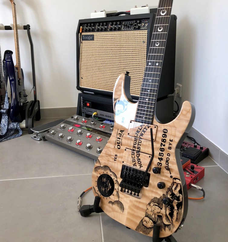 Je n’ai jamais mis une guitare dans son étui (sauf pour rares déplacements), j’alterne en fonction de mon feeling entre mes guitares et je suis aux anges.