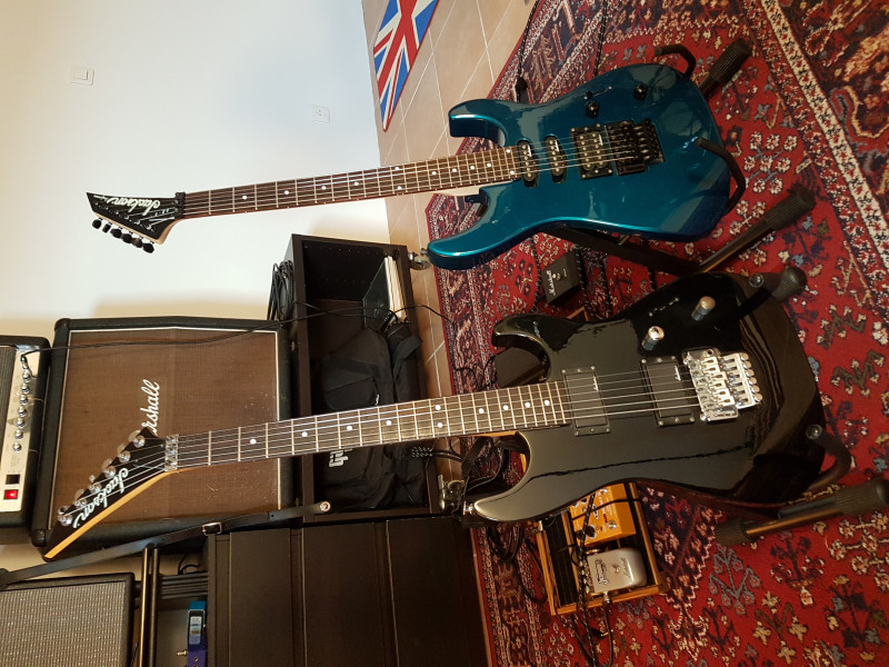 J'ai eu très envie d'une gratte plus typée Metal que ma Strat pour gratouiller avec mon fils gros fan d'Avenged Sevenfold. Je voulais qu'elle ait un Floyd et qu'elle soit clairement encrée dans mes années Metal à moi (les 90s), et surtout, pour pas trop cher (car c'est un vrai caprice) ...
