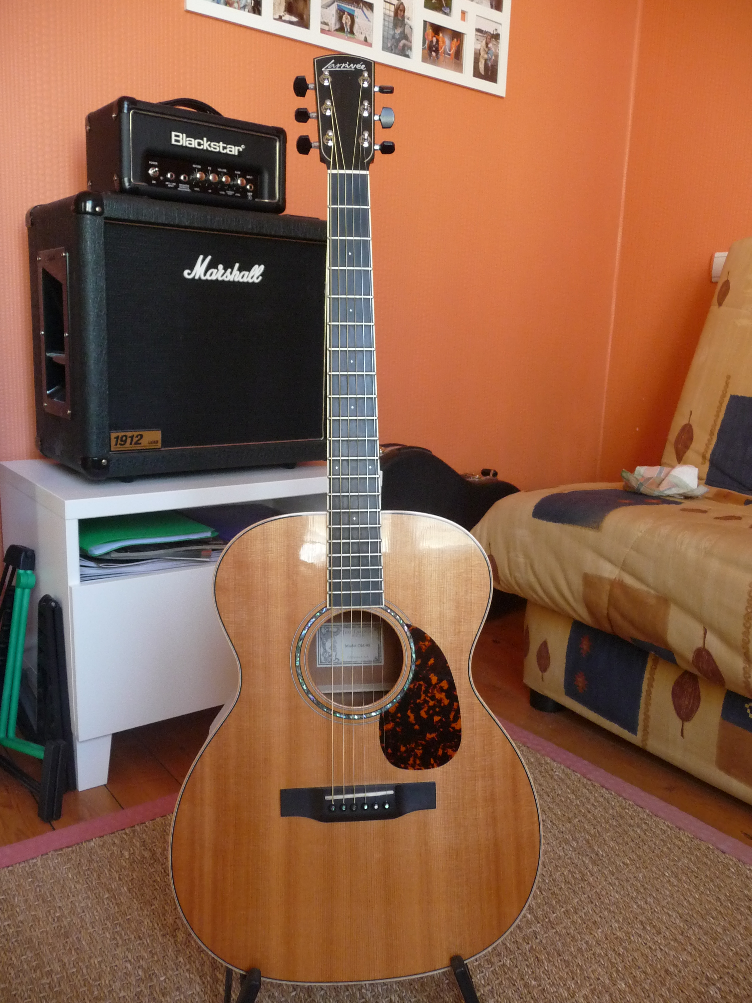 En terme de prise en main l'instrument me convient parfaitement, habitué au manche large de ma seagull j'ai même préféré celui de la larrivée, il ma semblé plus rond et moins en "V".