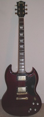 C'est une réplique exacte de la Les Paul. Pas une simple copie. De l'acajou, donc, mais surtout, tenez vous bien, une table en érable moucheté. Tout a été repris par rapport à la Les Paul originale, que ce soit dans les collages, la fabrication, la découpe des pièces.