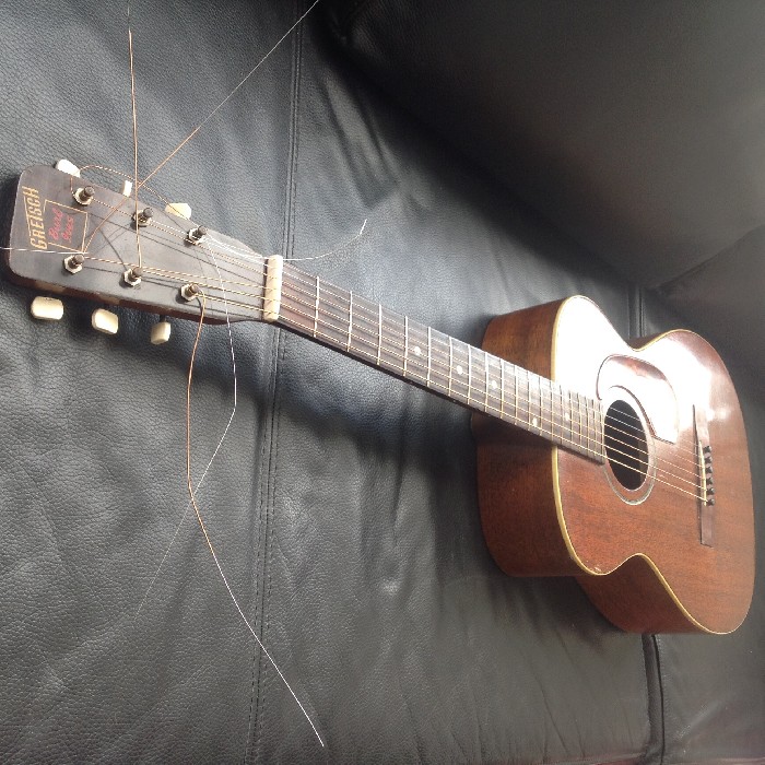 Il s'agit d'un modèle de 1965, en 66/67 elle gagnera un switch on/off, en 69/70 elle perdra les "trucs mute", et après aura le nouveau pickguard. Donc ce n'est pas un modèle Baldwin qui ne rachetera Gretsch qu'en juillet 1967, mais se servira des idées et des stock de Gretsch quelques 3 années encore, voire plus.