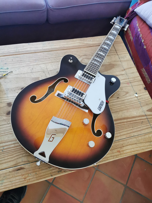 Convaincu de mon choix mais voulant explorer un peu plus le monde de la Gretsch, je dégote une 5420 histoire d'orner le cheptel, et , prétextai-je, d'avoir une guitare en backup.