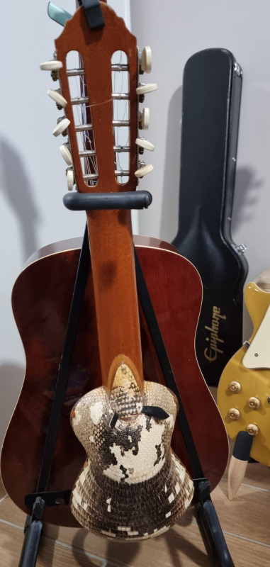 c'est très aigues, et assez sec, pas de sustain, et jouer dessus est assez galere car c'est mi la mi do sol, donc il faut réapprendre les accords, mais sinon c'est assez atypique.