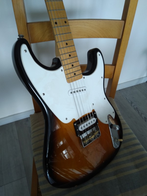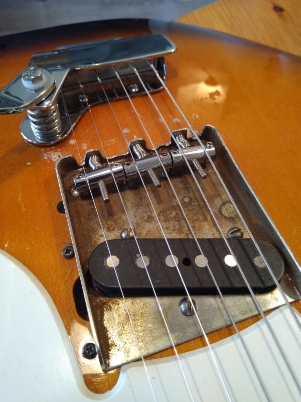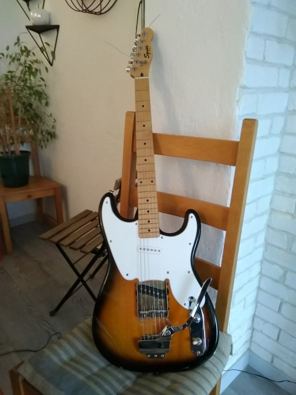 Un micro et chevalet de Telecaster baja (j'ai dû modifier le chevalet) et un vibrato de type vintage afin d'obtenir une modulation de type bigsby.