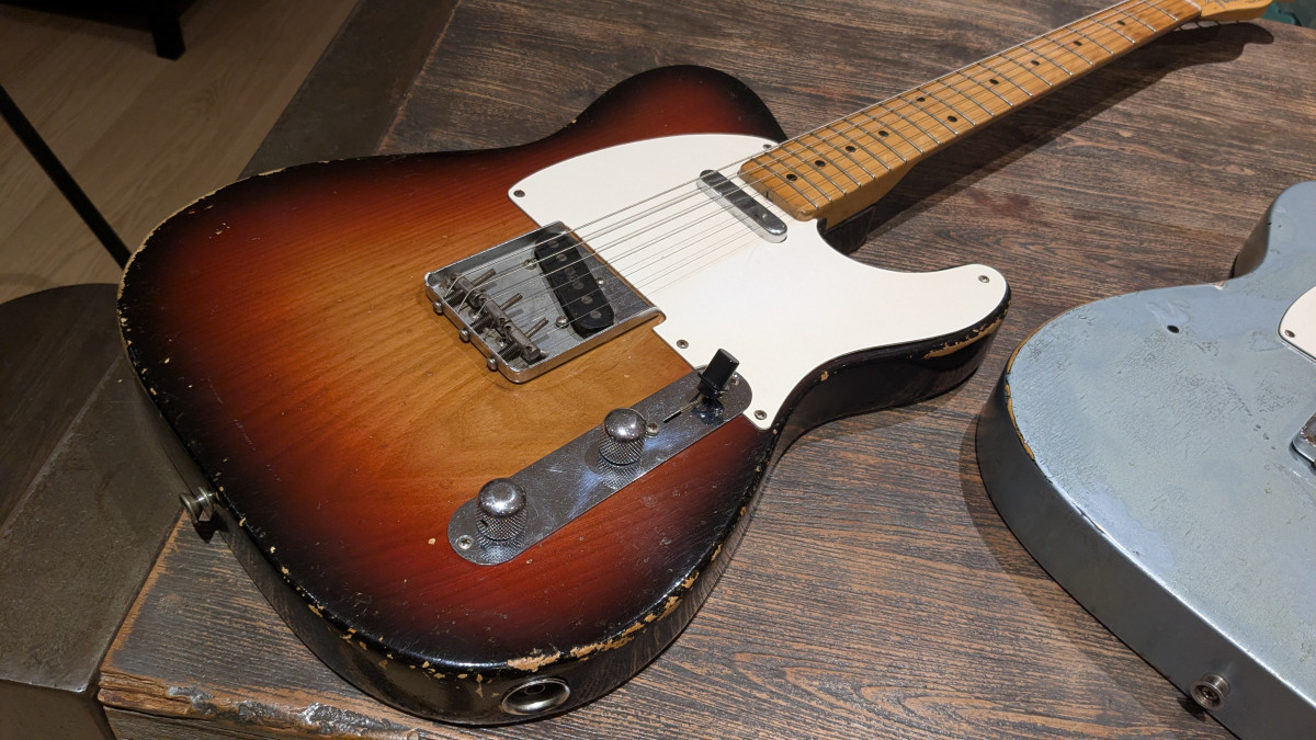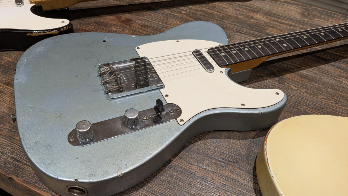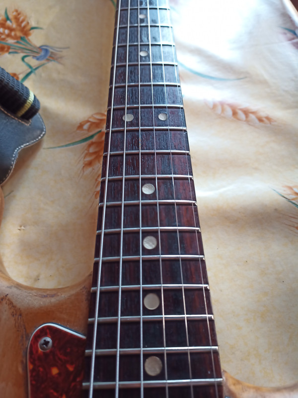 Elle avait carrément du vert de gris sur les frettes. Ajouté à ça un potard de moins, des cordes toutes rouillées, un sillet de merde graphmoncul et une action de quasi 1 cm