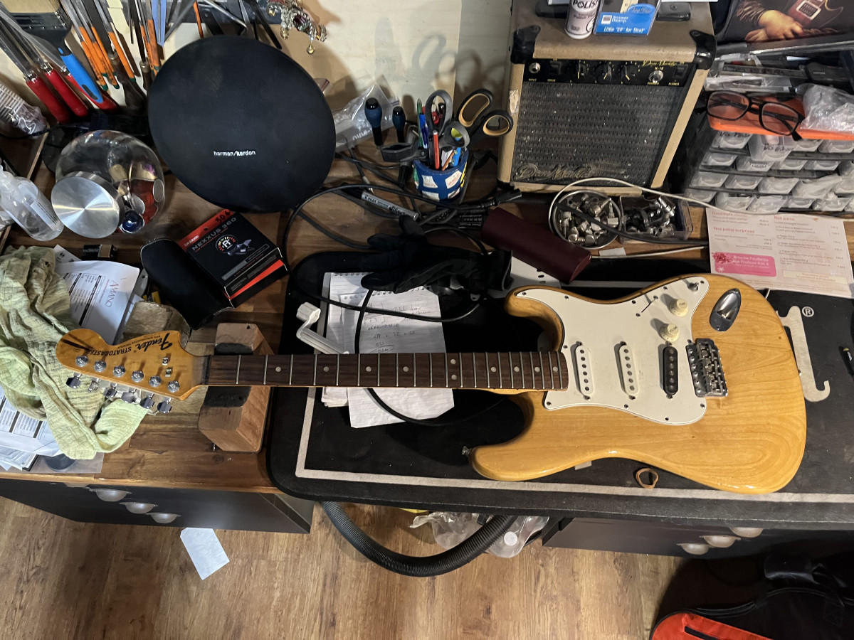 Au début je la boudais car j’avais ma Telecaster US toute neuve et parce qu’une Strat … bah je trouve toujours ça moche