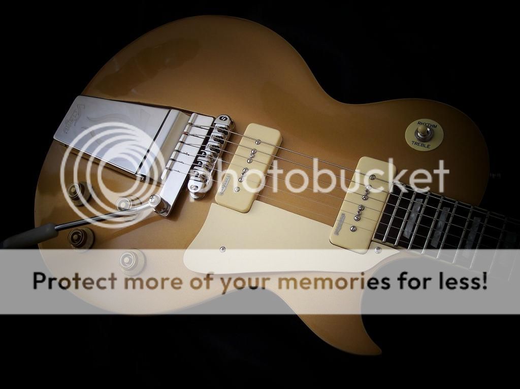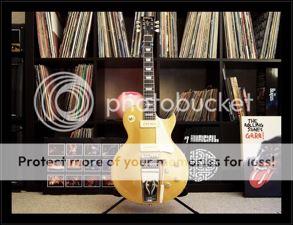 Bref, une très chouette gratte avec un mini défaut cosmétique quasi à mi-prix. J'ai été tout de suite attiré par la combinaison inédite Les Paul GT56-Vibrola, et ce que j'apprécie, c'est qu'ils ne se sont pas contenté de coller un vibrola sur un de leurs modèles existants, mais qu'ils se sont donné la peine de réfléchir!