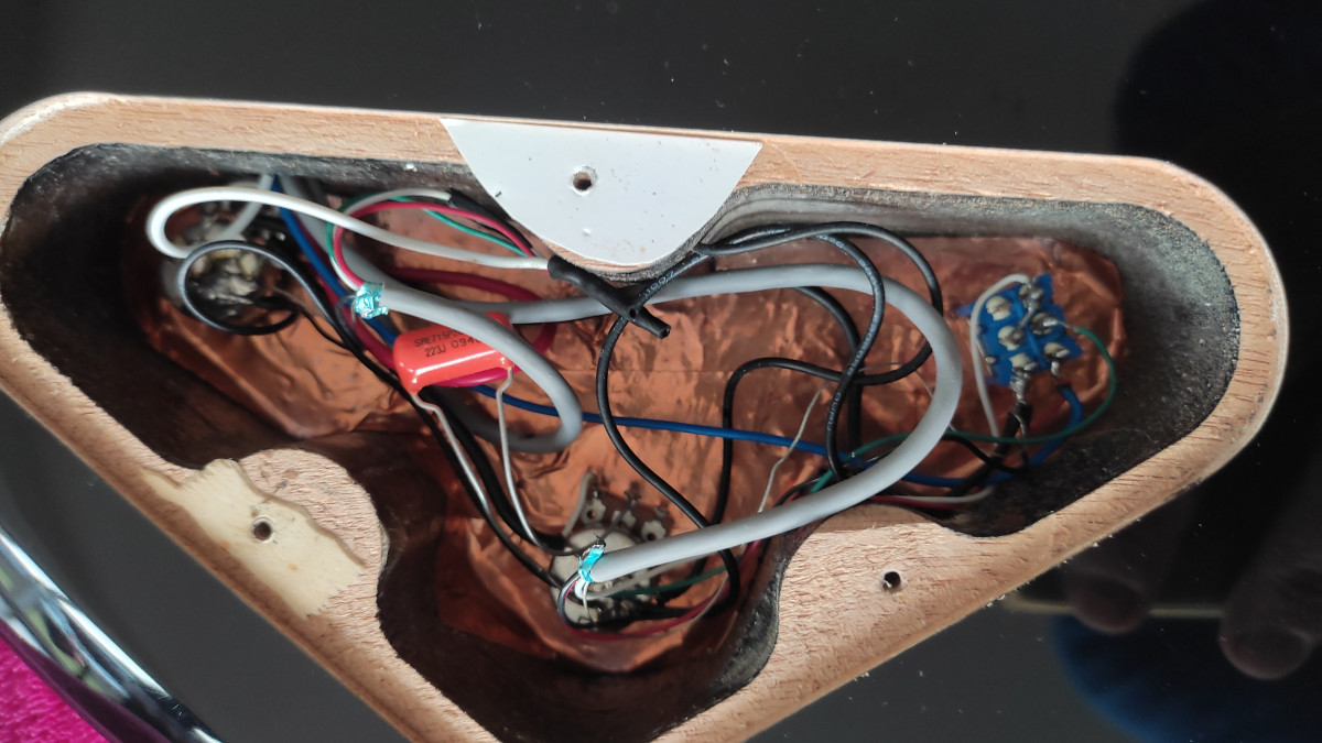 Elle a été modifiée et le split micros qui est censé être un potard est devenu un interrupteur, mais il n'y a qu'un seul micro branché dessus