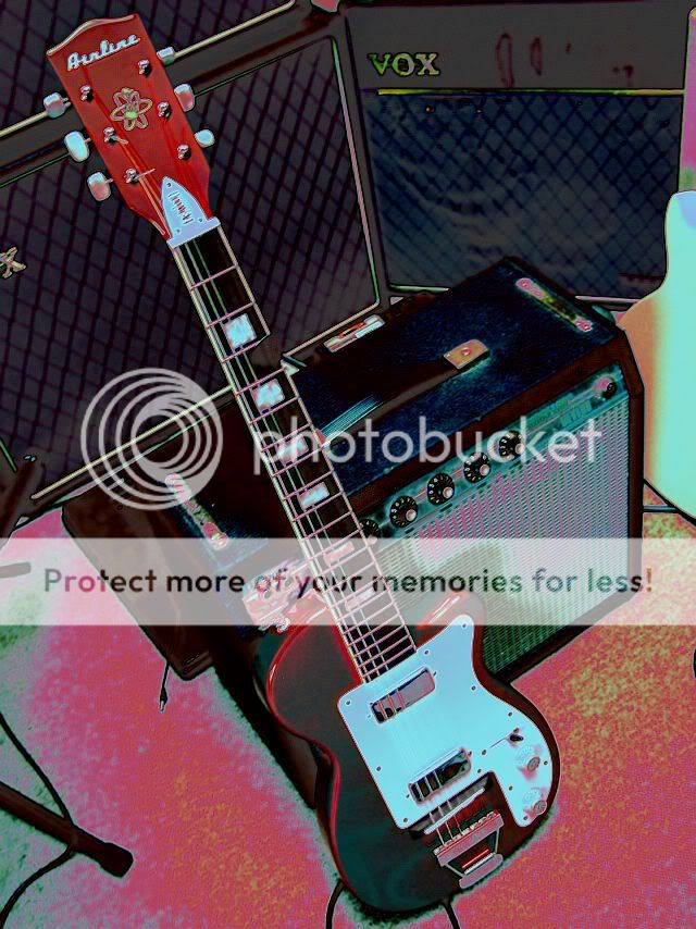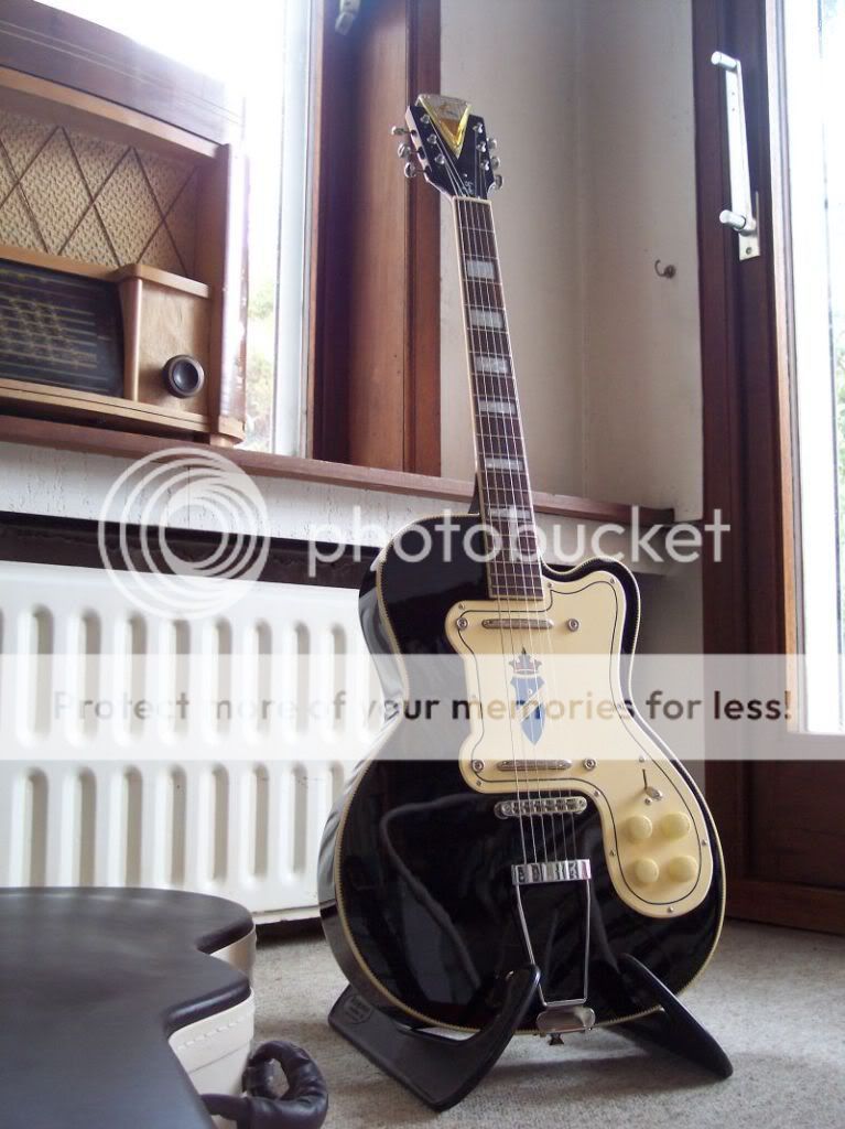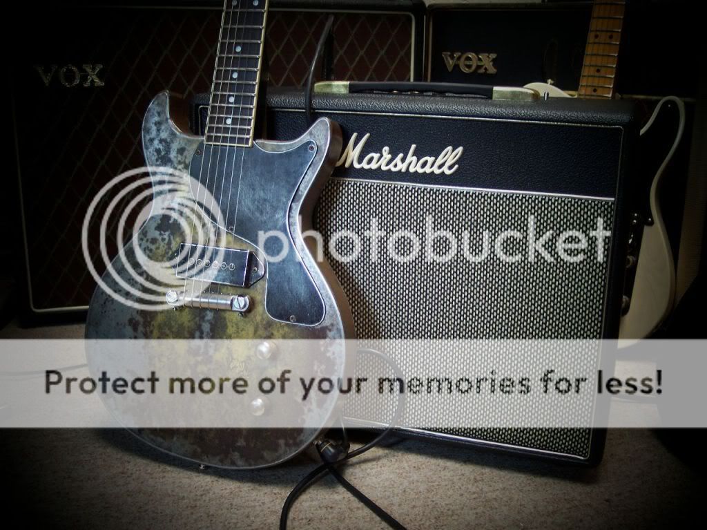 A droite sa nouvelle grande soeur que je ne quitte jamais ! Une wild montée avec un seymour duncan P-RAIL et un P90 dusenbergh en manche , une TUERIE !