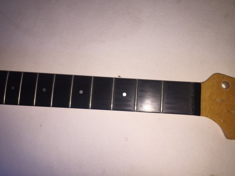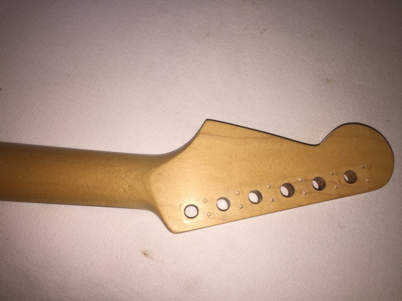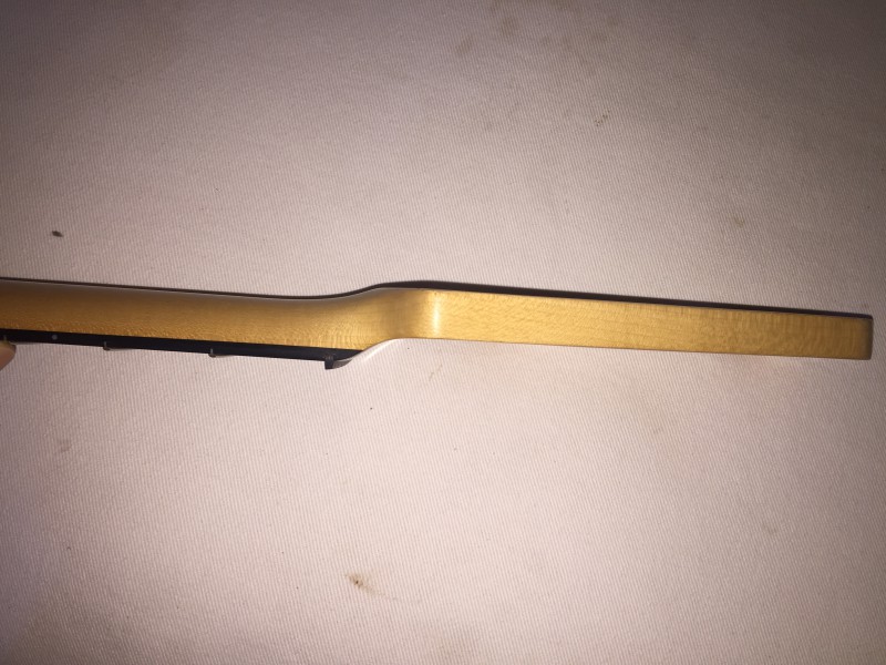 Un jour, par hasard, pour essayer un manche nouvellement acheté pour une guitare pas terminée, j'ai monté ce manche sur la strat qui me posait problème. Manche avec un profil 54, donc assez épais, frettes vintage et touche palissandre brésilien. Et là, le coté dur à instantanément disparu.