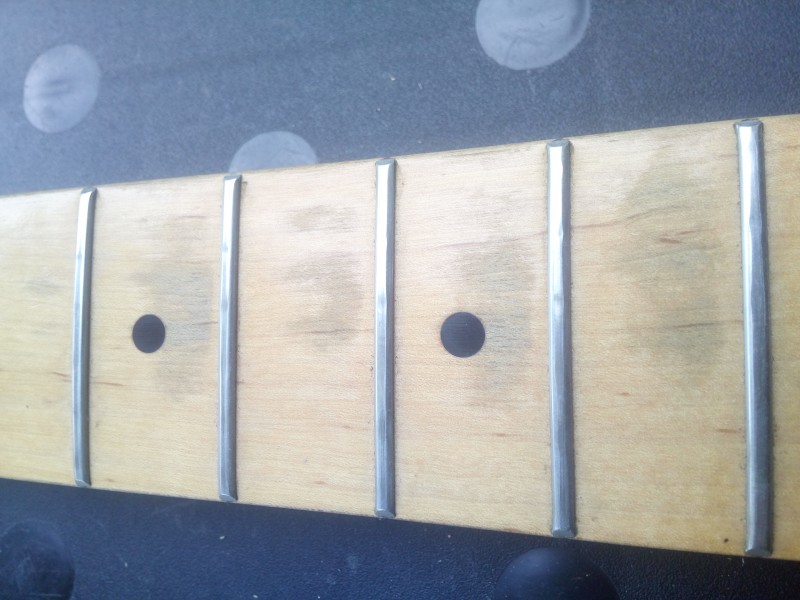 Les frettes étant très peu usées, je penche plutot pour un vernis très fin. Et malheureusement je suis pas fan du relic. Je pensais obtenir une patine en le jouant mais pas une rapide...
