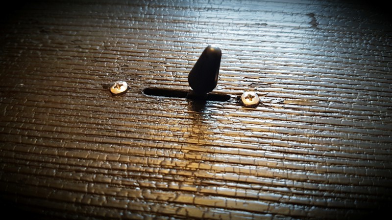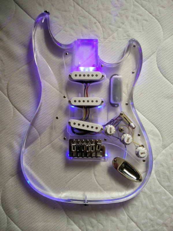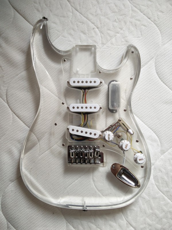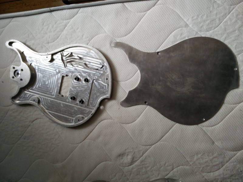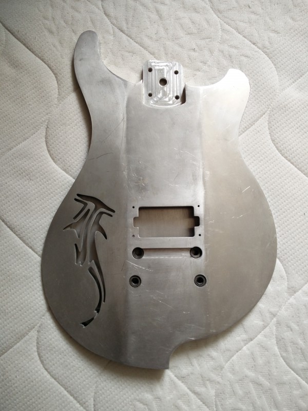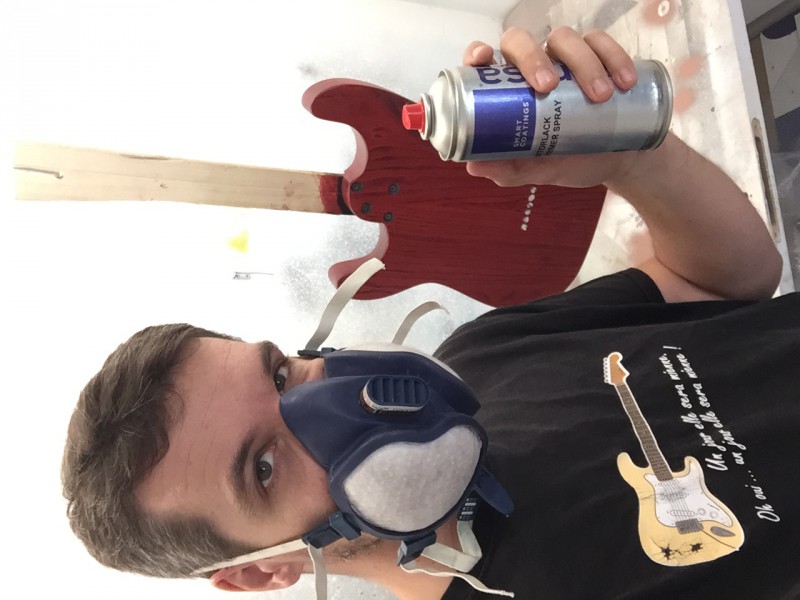 ) est terminée, j'ai pu en poser sur la tête du manche en érable sans qu'il y ait de grande différence de couleur. j'avais prévu un peu d'encre de chine noire pour foncer la teinte rouge au cas ou mais finalement pas besoin.