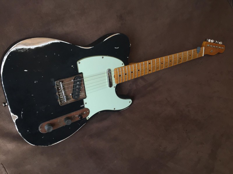 Corps Guitarbuid aulne, manche Allparts, micros Priboraa, CTS et switchcraft. Voui, c'est mon premier relic perso, suis assez content du résultat. Faut encore reliquer des vis pour le pickguard, et un jeu de mécas, sont bien trop propres celle-ci, mais je m'impatientais de l'assembler pour l'entendre, et elle se défend bien, plutôt hargneuse en fait, elle ne manque pas de caractère!