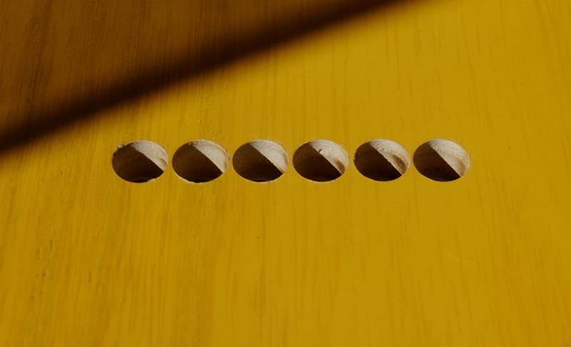 Le résultat est très bon et le prix très léger (fdp compris). Cela dit, il faut prévoir un fraisage (défonceuse) pour que les parties cylindriques s'insèrent parfaitement et faire attention à ce que les passages de cordes soient tous bien alignés (j'ai du ajuster les Mi grave et aigu).