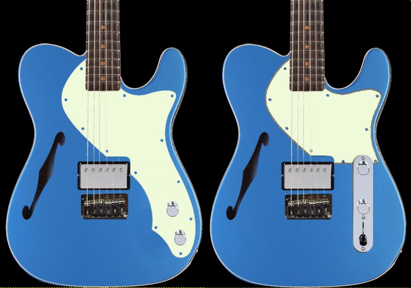 Avec le PG thinline, ça change un peu. J'ai commandé un PG sans trous pour le micros, les pots et le switch en mint green sur Aliexpress. Seul inconvénient technique, il faut que je refasse la cavité pour les potentiomètres. Un peu plus de boulot, travail du bois.