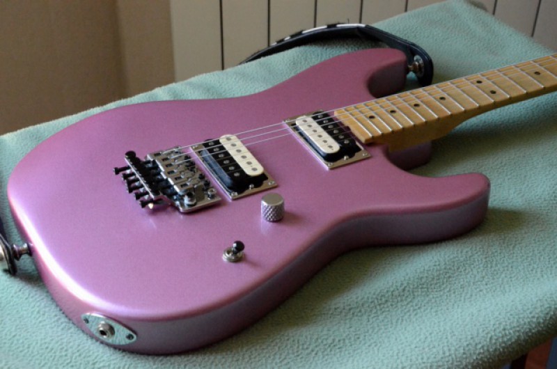 J'ai arrondi les bords de frettes, quelques couches d'huile de lin sur la touche, vernis Nitorlack Nitro ambre mat, lustré uniquement sur la tête, sillet en os.