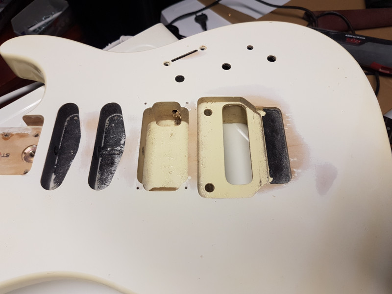 Le pickguard métallique était plutôt cool mais inconfortable comme la craie sur un tableau: plastique 3 ply à la place, pas jauni, pas vintage.