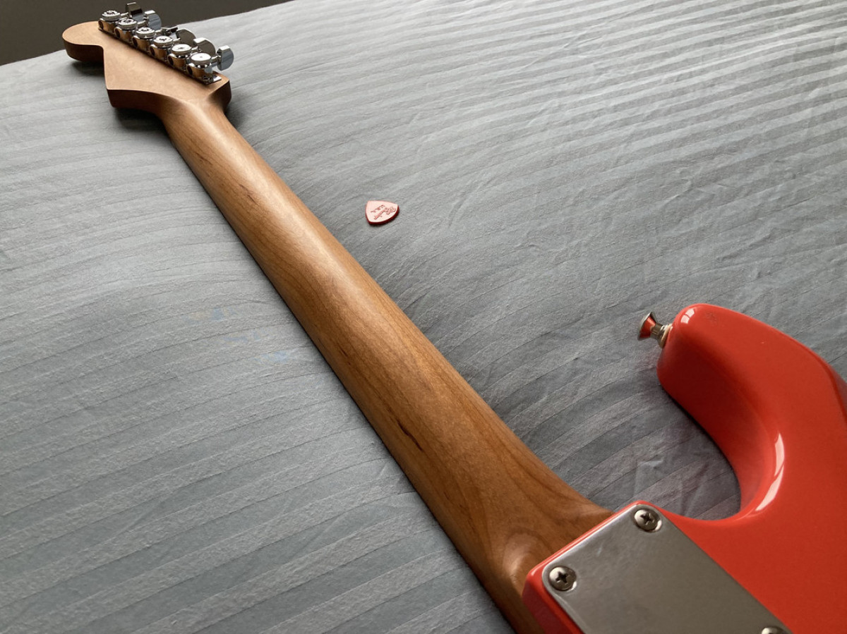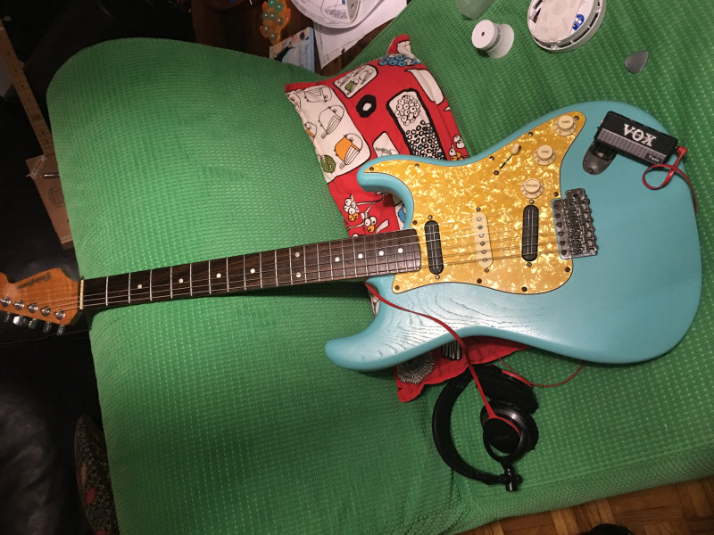 J'étais à la recherche d'une strat il y a quelques années, après avoir un peu tout essayé dans le magasin c'est la partscaster Warmoth de quelqu'un d'autre qui a retenu mon attention.