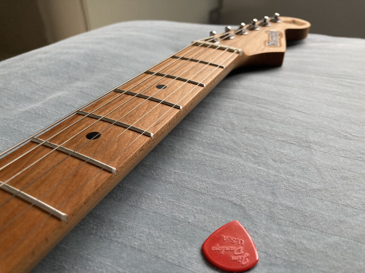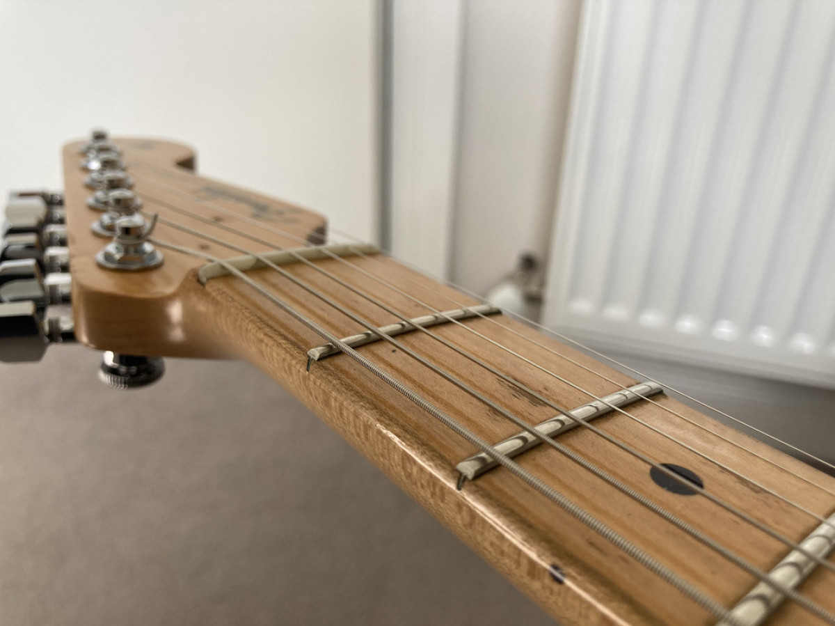 Le frettage est très bon, malgré les avertissements de Warmoth comme quoi leurs manches n'ont pas un frettage parfait et que c'est à l'utilisateur d'affiner le travail chez un luthier. Il est meilleur que sur beaucoup de guitares neuves.
