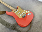 Ah j'ai aussi changé le pickguard "anodized gold" pour du plastique parce que je trouvais l'original assez horripilant, les doigts/ongles faisaient comme la craie sur un tableau. J'ai enfin changé de pickguard et micros parce qu'une bonne affaire passait par là et j'ai pu passer d'un pickguard noname, micros tonerider et câblage maison franchement moyen à un pickguard Fender avec un set de micros provenant d'une MM Albert Lee SSS, câblage pro, sans perdre un euro, la seule bonne nouvelle pour le portefeuille de tout ce post.