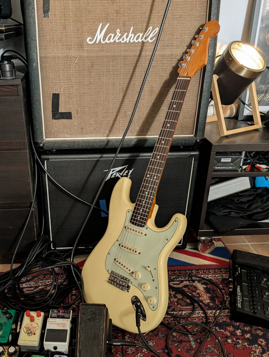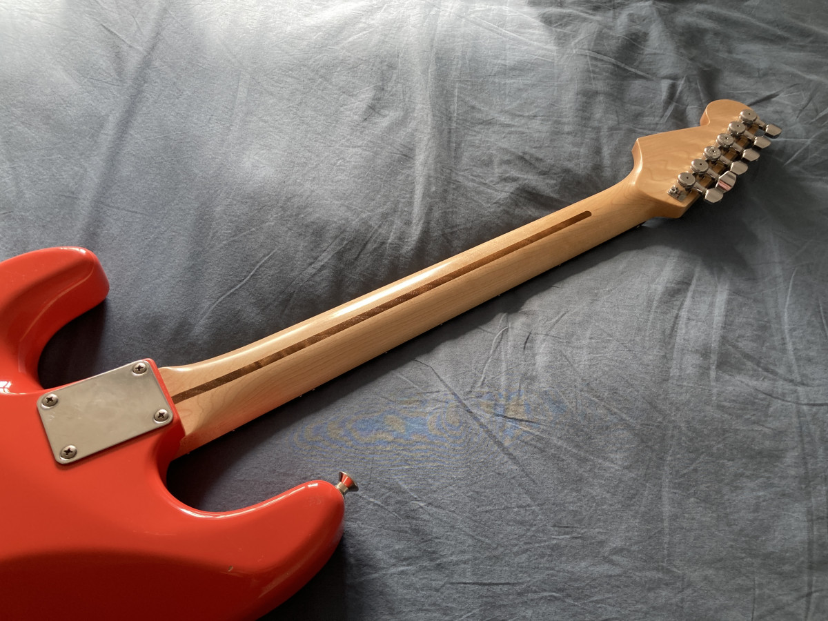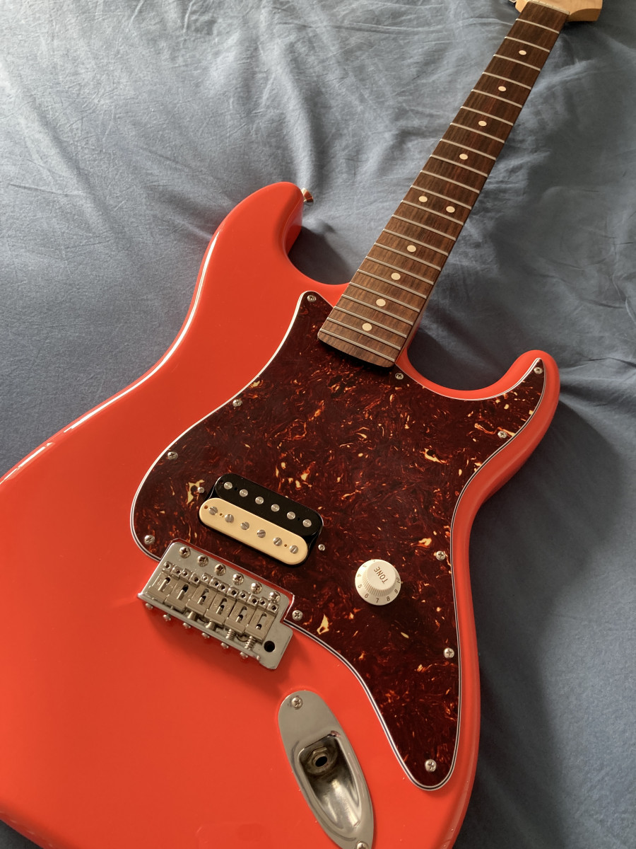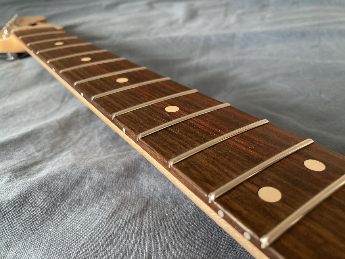Le manche Fender Mex s'en est allé il était très proche de ma Fernandes The Revival 64, remplacé par un manche Warmoth standard thin avec des frettes 6150. J'ai fait de mon mieux pour adoucir les bords de frettes.