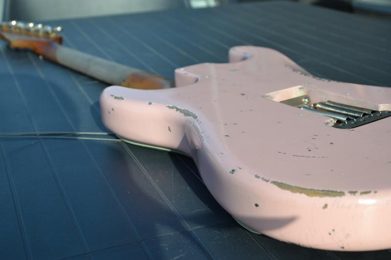 Pas trop galéré cette fois pour le vernis. J'avais déjà tenté un sunburst sur ma première il y a longtemps (2005), j'ai fini par tout poncer. C'était ça :