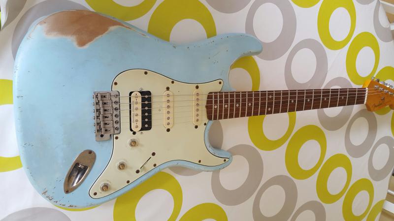 - Pickguard SSS relic type '64. Il a été retouché pour y insérer le double (d'où le petit trou d'origine au-dessus du pot de volume. The détail qui tue selon moi)