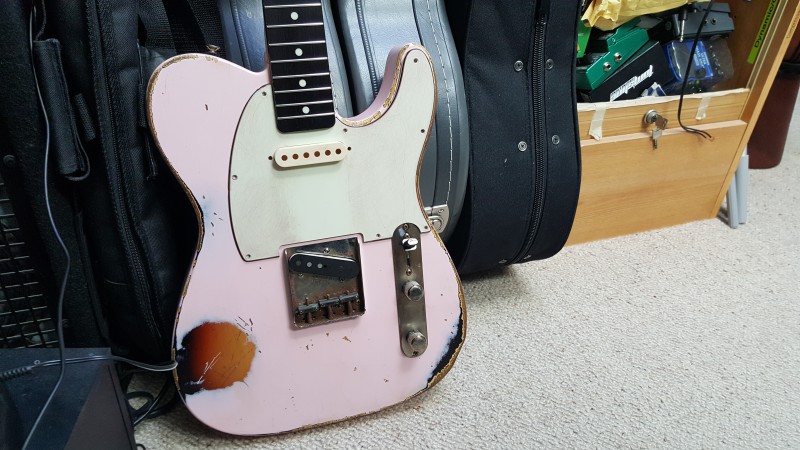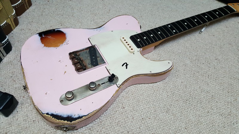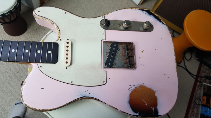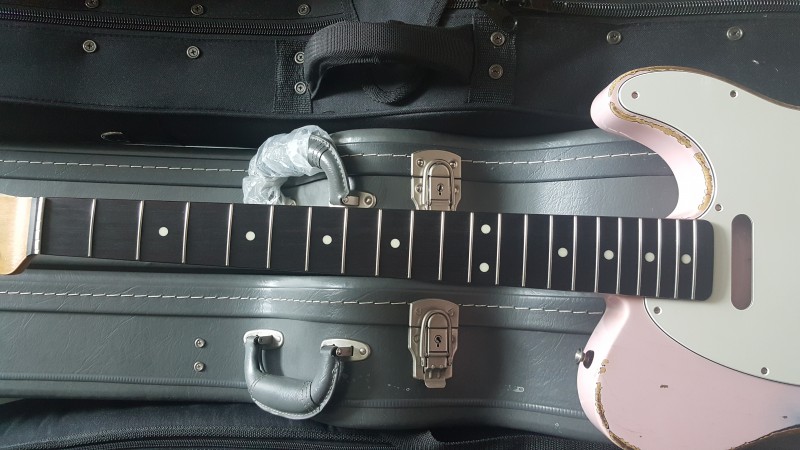 En fait, j'ai pris comme exemple le manche de ma mustang de 65, qui est de loin ma guitare "vintage "la plus usée....