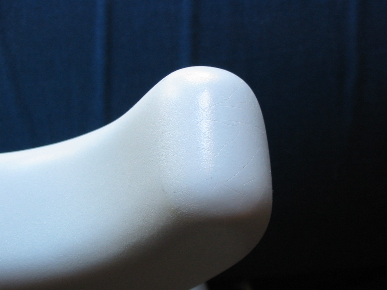 Teinte sur mesure basée sur la recette de la couleur Fiat Tcha tcha, chez un grossiste en produit auto (Thomé) et bien qu'ayant pris le vernis chez le même fournisseur, celui-ci s'est fissuré, du coup j'ai une espèce de checking qui lui va comme un gant. Le manche est un peu plus épais que celui d'une strat standard et c'est bien ainsi. Elle est un peu plus "abimée" maintenant (la finition a carrément disparue en certains endroit).