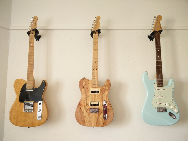L'idée de départ : me faire une guitare offset typée "pawnshop". Au final c'est une Telecaster avec un manche Stratocaster ! Ayant plutôt deux mains gauches j'ai minimisé les risques, et les coûts, en misant sur Squire.