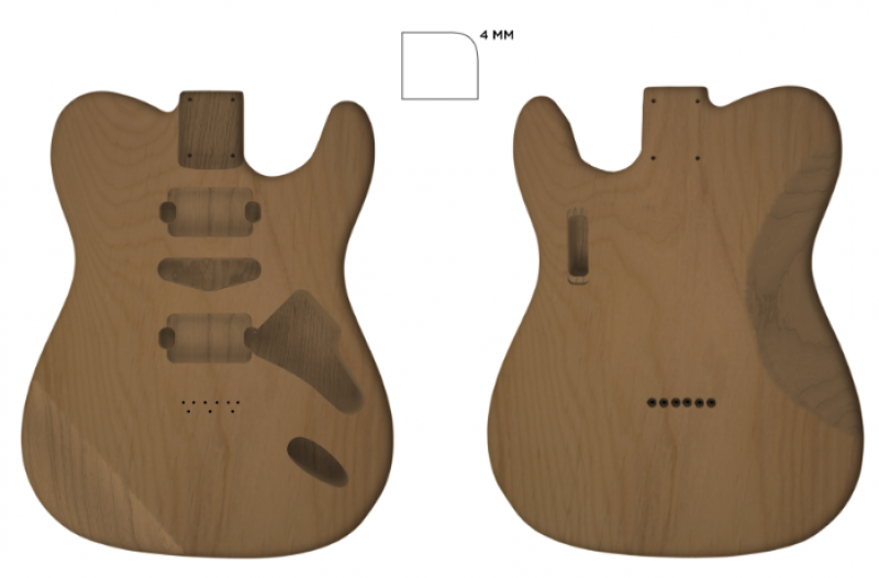 - Faire les chanfreins habituels de la Strat et configurer le reste en telecaster pour gagner en confort/ergonomie tout en gardant le "caractère" sonore désiré