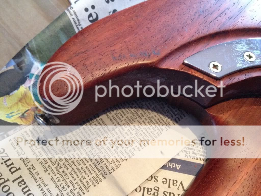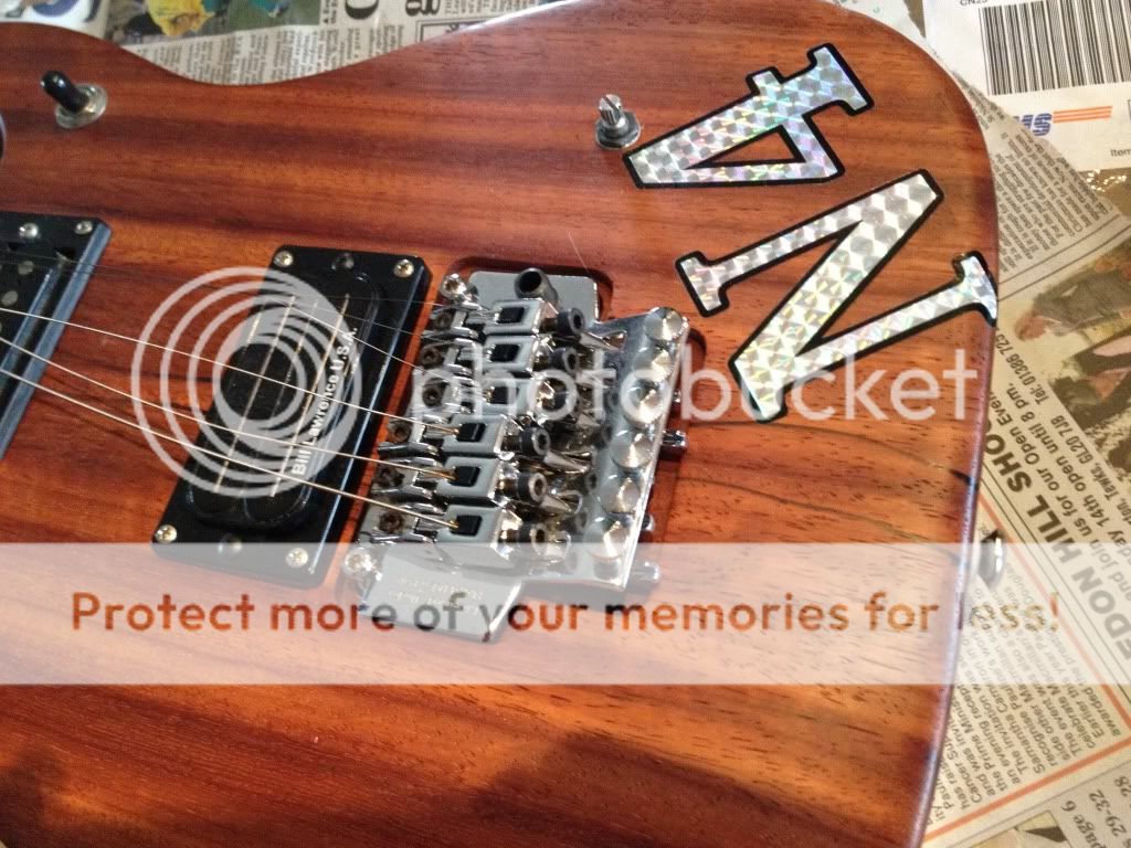 Il prétendait qu'elle fonctionne parfaitement. Mon oeil ! Le floyd et les micros sont pourries. Les mécaniques mal montées..... et puis de jolies traces de marqueur sur le corps. Trop cool.