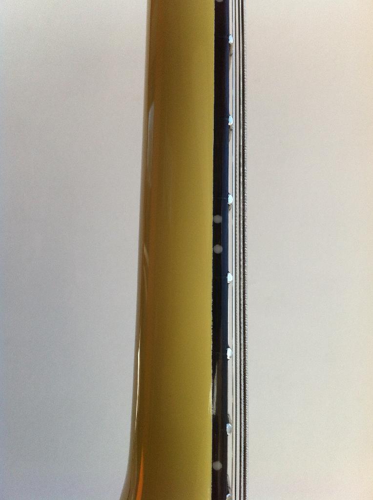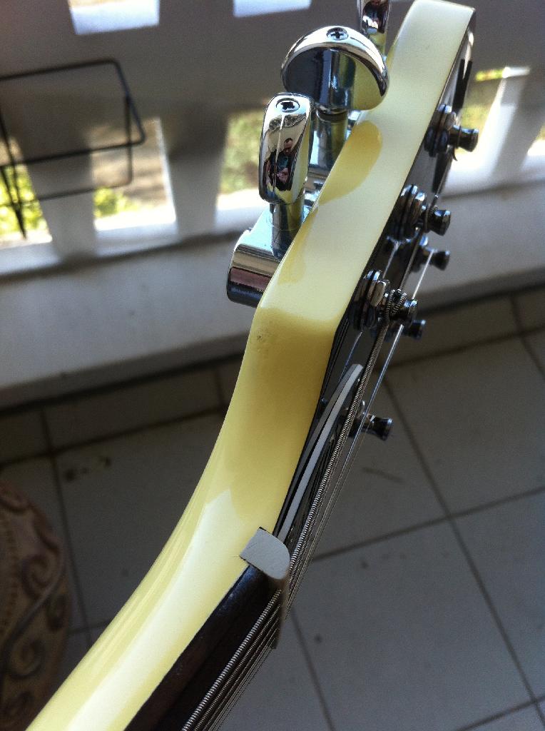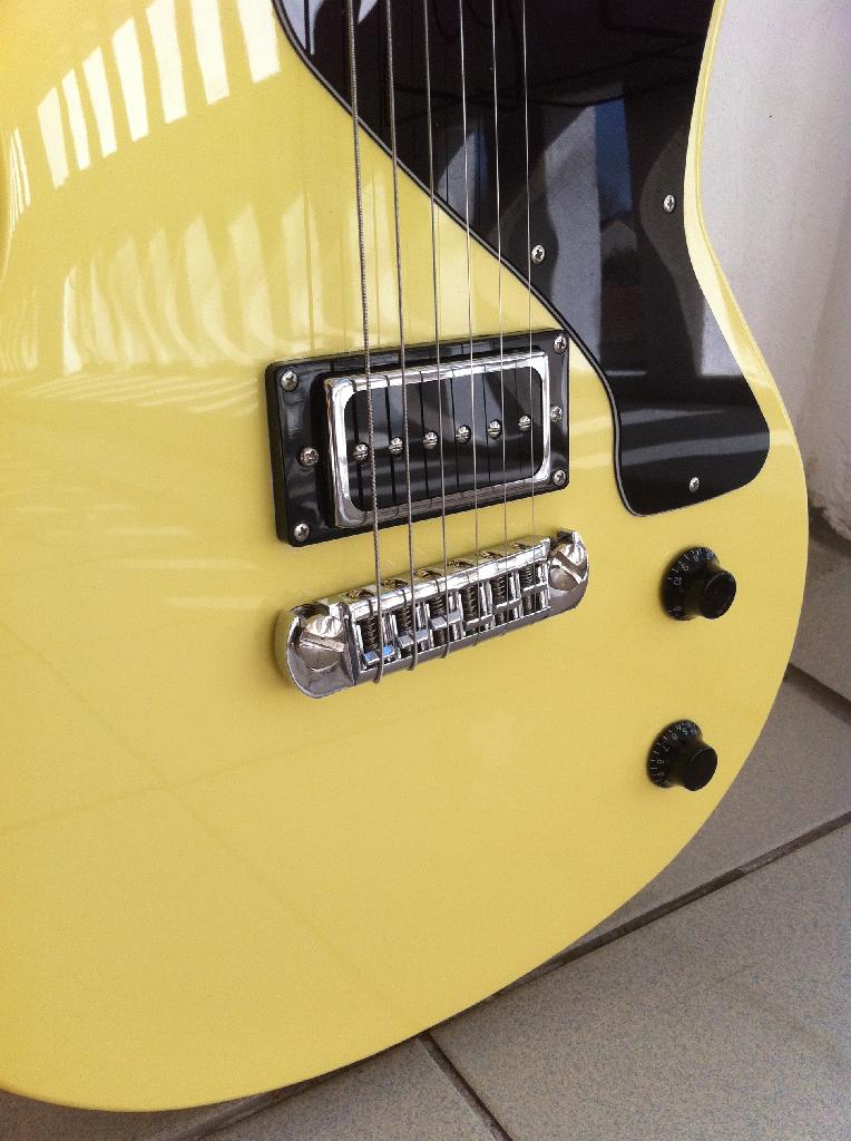 Chevalet tres stable, mecas wilkinson (je pensais que wilkinson allait plus sur de l'entree de gamme, mais why not) pas trop mal, micro tres bon, sonne bien fat mais reste tres defini. Rest eles details de finitions que donc je tolererai sur une epiphne a 300/400 euros mais pas forcement a 600e (et j'aurais du prendre une tof de dessous la plaque (enlevée pour retailler un gabarit, c'est un peu degueu en dessous (plaque posée trop tot sur le vernis et tenon apparent ci et la, bon a la rigueur c'est en dessous ....)