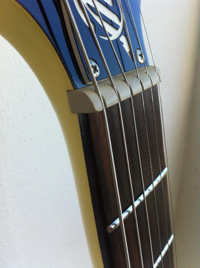 Sillet mal ajusté, micros non conformes à la description, chevalet qui a un radius beaucoup trop prononcé par rapport à la touche (donc frise de la corde de mi grave), peinture si fine que ça s'use en 5 secondes, finition de la cavité micros et potards vraiment limite (des pots standards ne passent pas car les trous sont mal centrés par rapport à la défonce, donc mini pots obligatoires...)