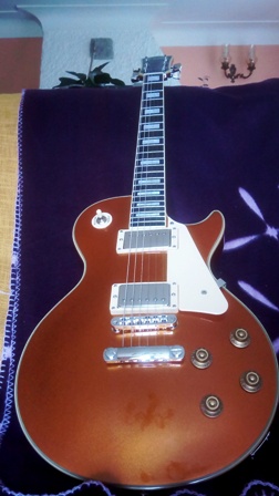 . En fait 3 élec: une LesPaul B-WILDE 200€ (d’ailleurs qui connait, je n'en ai vu qu'une sur le net) mon luthier a été surpris par la finition, une 335 AZ 250€et une SG 150€ sunburst vertical jamais vu (photos à venir) et une basse Firebird tobacco sunburst TOKAI 250€ pour mon meilleur ami. D'où sortait ce stock!!!???? car il y avait d'autres LesPauls AZ et B-WILDE ainsi que des folks jumbo AZ. Je n'ai rien changé sur ces grattes sauf les mécanique sur la LP B-WILDE j'ai mis des klusons néovintage tête tulipe. je vais essayer de faire des enregistrement pour vous faire une idée.Pour l'instant voici ma B-wilde en photos.