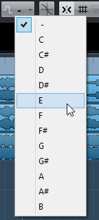 Cubase vous offre également la possibilité de changer la tonalité de base d'événement audio individuels ou de conteneurs MIDI individuels. Vous avez également le choix de transposer le projet en entier ou seulement quelques parties afin de créer par exemple des variations harmoniques.