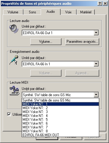 midi-yoke est un câble midi virtuel (en fait , il y en a 8 ) qui permet de faire communiquer des programmes midi par soft