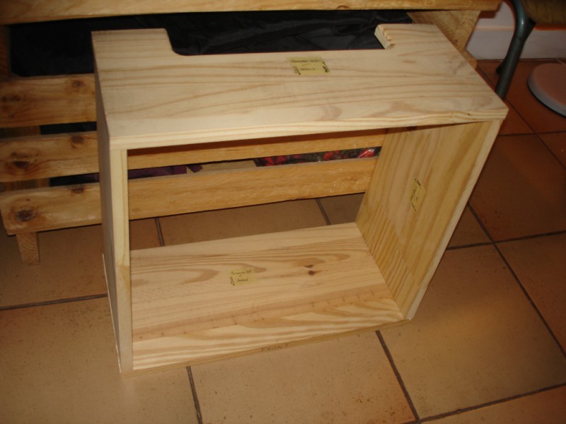 Comme sur la photo ça me semble bien solide. Moi je découpe deux encoches sur les cotés pour y poser une planchette qui s'appuie sur les panneaux du haut et du bas. J'utilise du tasseau massif de 10x30 environ.
