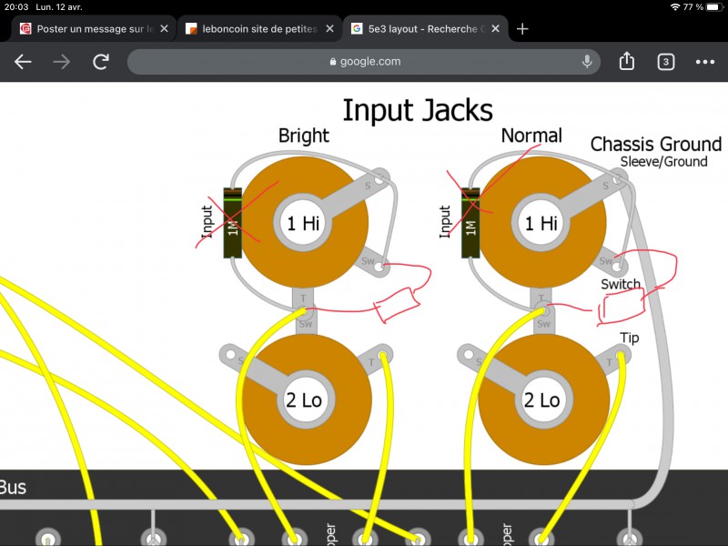 Mon cablage des résistances 1M sur les embases jack est différents des layout mais ça me semble cohérent.