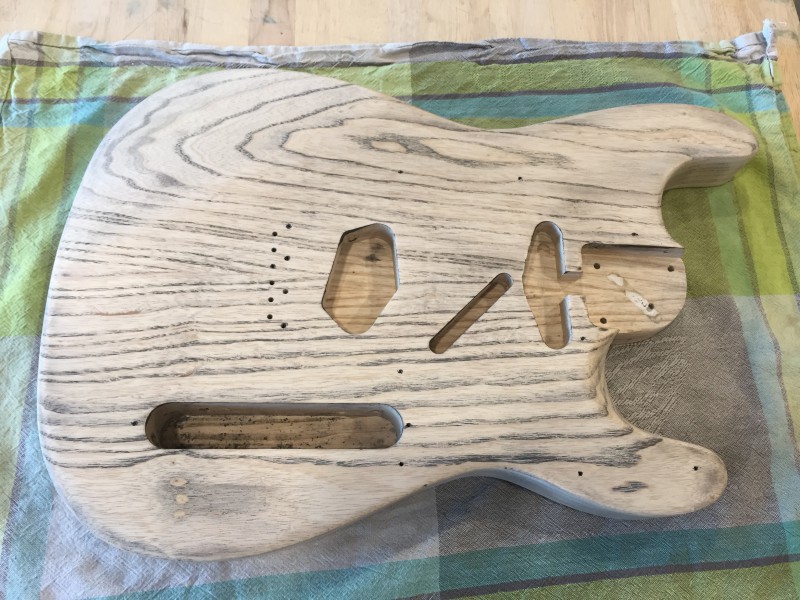 Ou alors il aurait fallu râcler avec une spatule très dure mais trop peur d'altérer le bois du corps. Du coup j'ai poncé tranquillement, et j'en suis venu à bout.